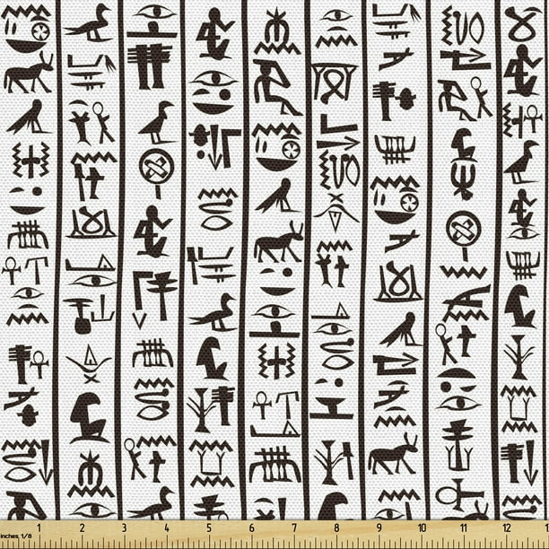 Egyptian Print Fabric By The Yard Upholstery Vertical Borders Hieroglyphics Alphabet Language Cultural Decorative Fabric For Diy And Home Accents 1 Yard Black White By Ambesonne Walmart Com
